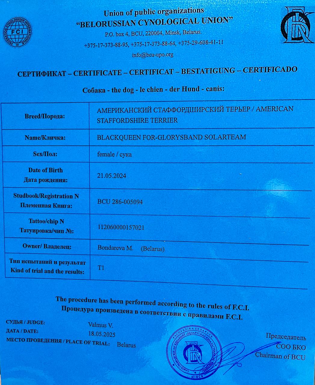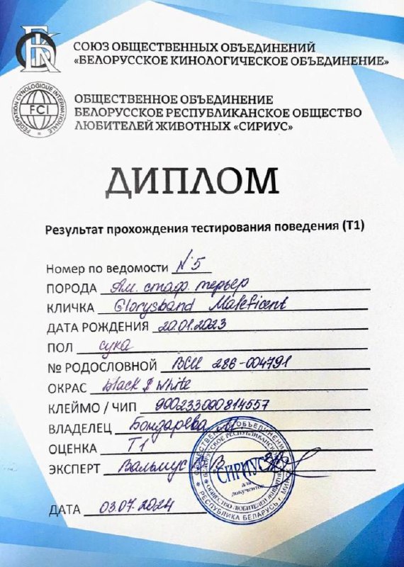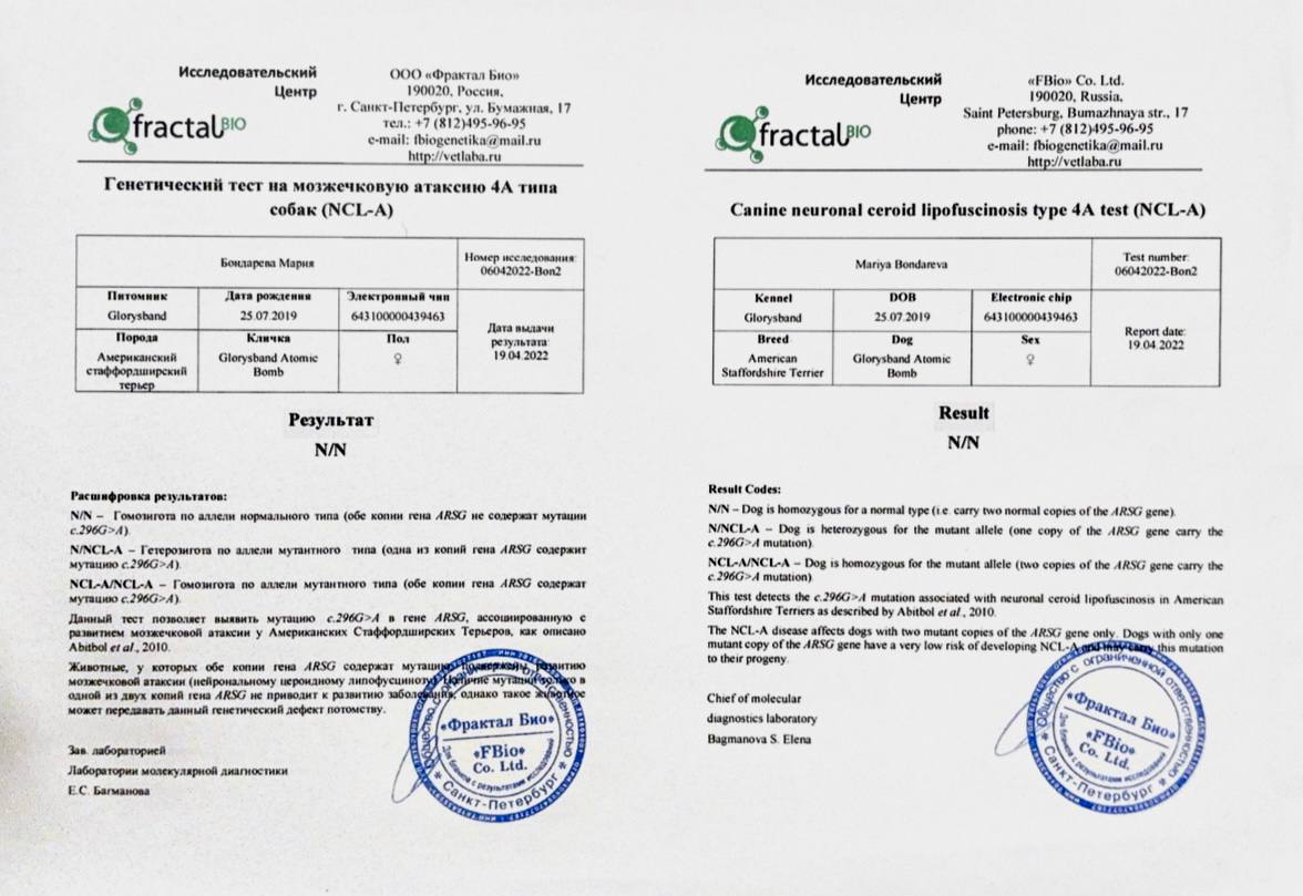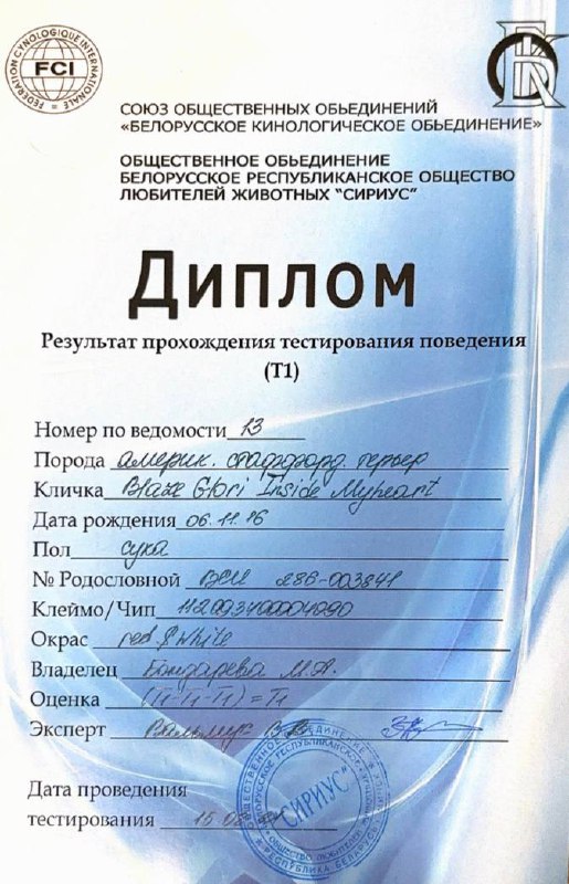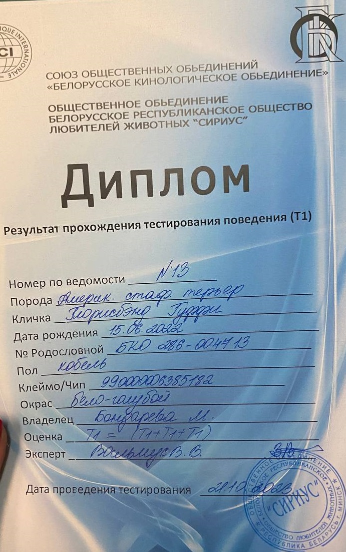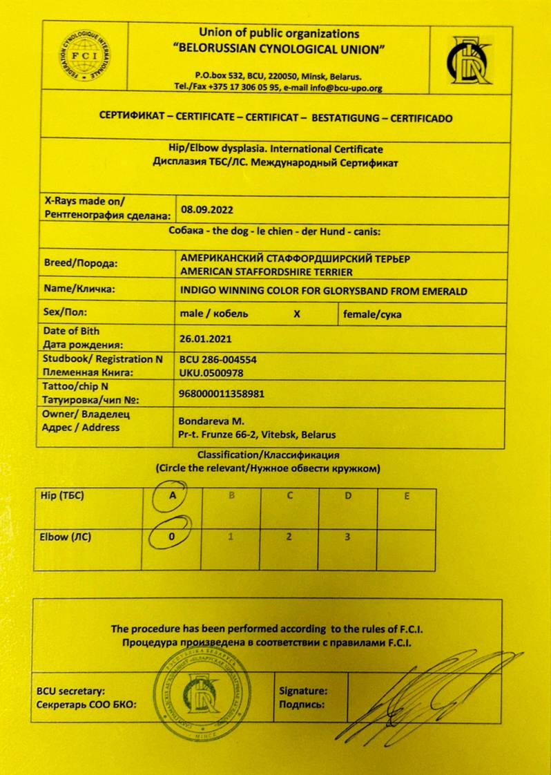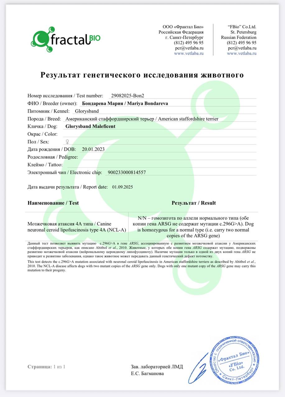 Амстаффы в питомнике Glorysband проходят программу отборного разведения. Мы уделяем внимание генетическим тестам, здоровью и психике, чтобы каждое новое поколение собак соответствовало высоким стандартам FCI. Мы понимаем, что выбор щенка — это доверие. Поэтому в питомнике Glorysband каждое разведение основано на проверках здоровья и психики производителей. Наши американские стаффордширские терьеры проходят обследования на дисплазию, атаксию и глазные болезни, а также тесты устойчивости характера.