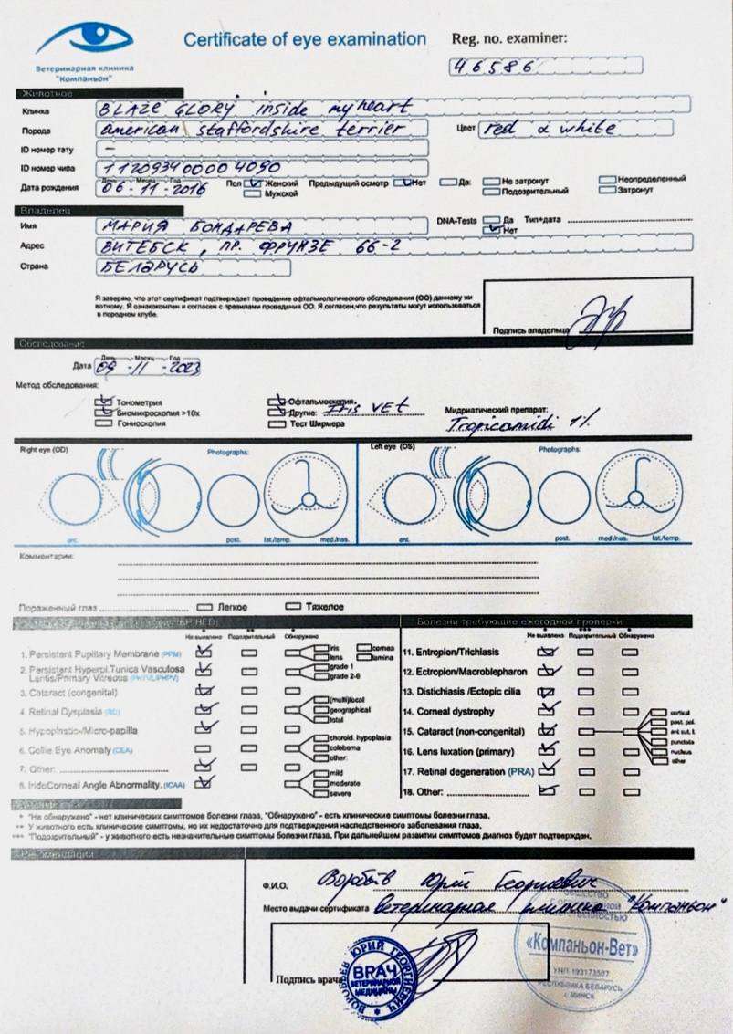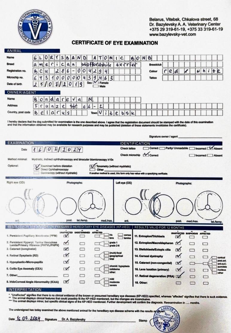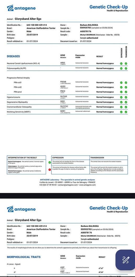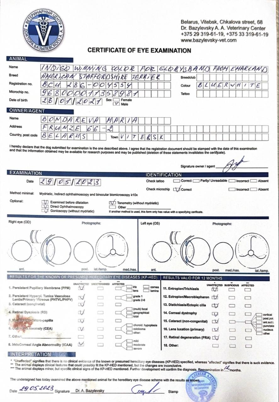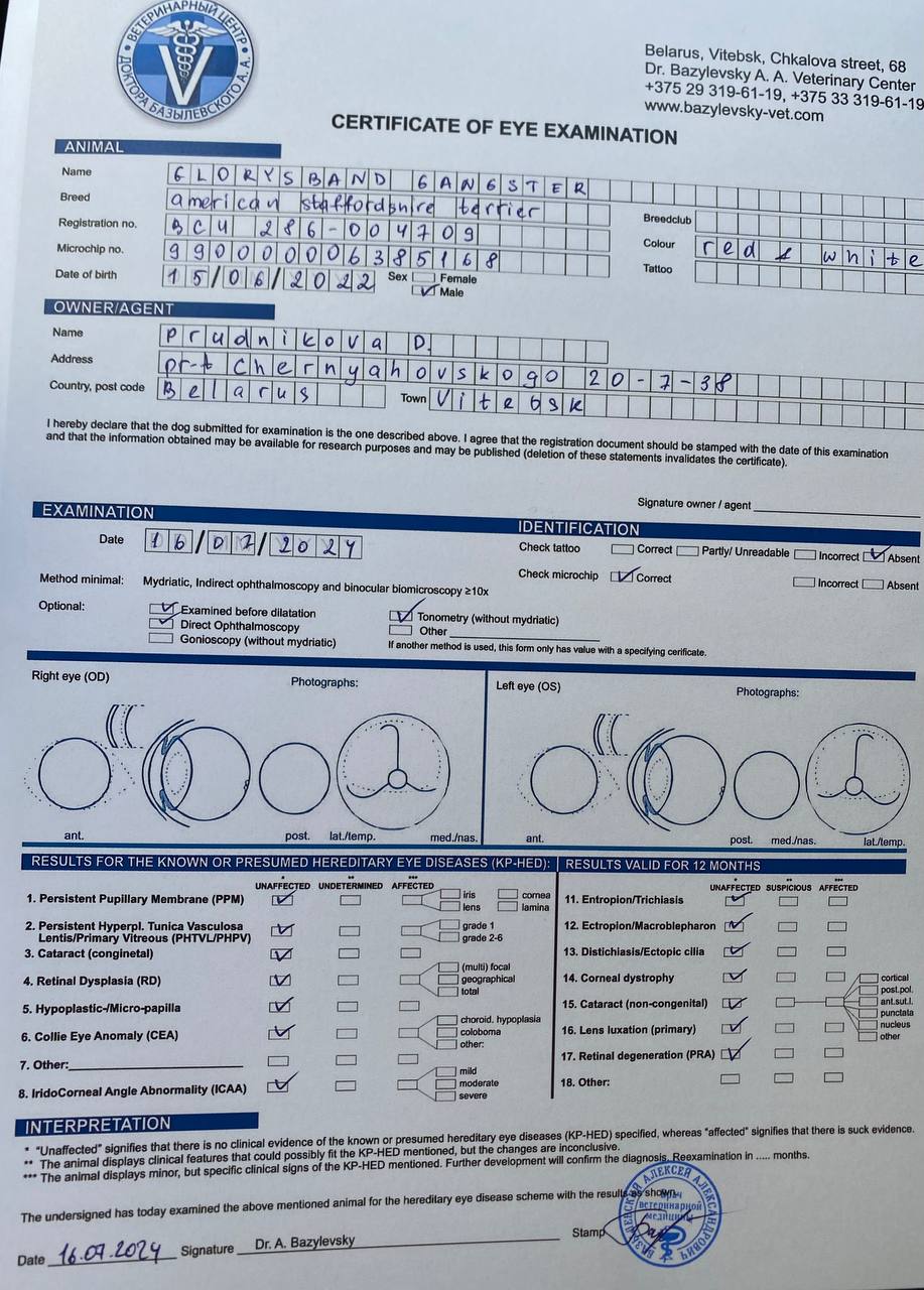 Здесь вы можете увидеть результаты медицинских тестов и родословные наших собак. Для нас важно, чтобы щенки Glorysband росли не только красивыми и сильными, но и здоровыми, уравновешенными и надёжными компаньонами.