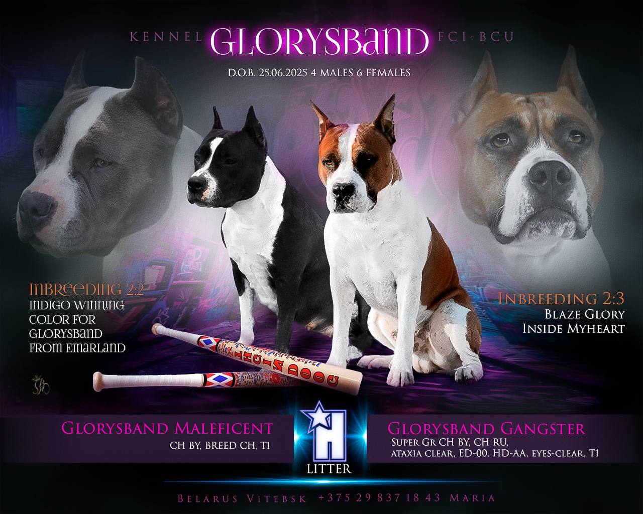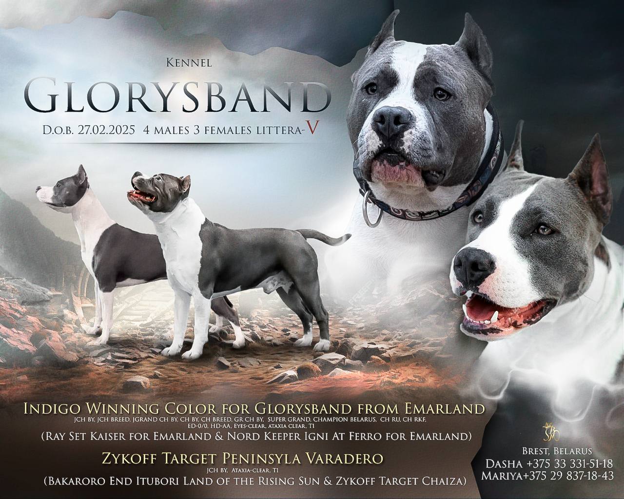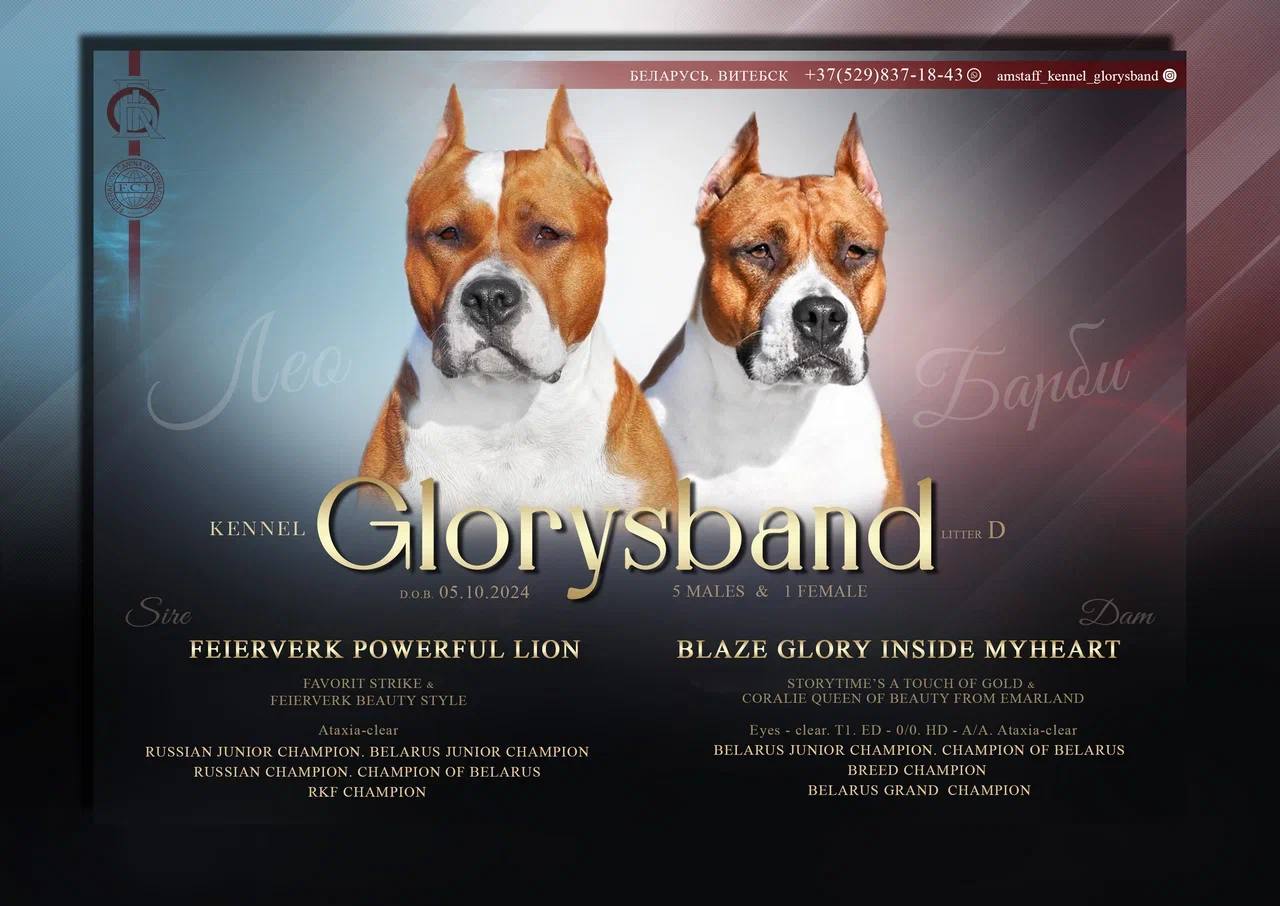 Выпускники питомника Glorysband нашли свои семьи в Беларуси и за её пределами. Наши амстаффы с родословной FCI живут по всему миру, подтверждая качество и признание разведения. Выпускники питомника Glorysband (FCI) — это чемпионы и спортивные звёзды, надёжные няньки для детей и верные друзья для всей семьи. Умные, энергичные и добрые чистокровные американские стаффордширские терьеры Glorysband FCI kennel отличаются безупречным экстерьером, крепким здоровьем и устойчивой психикой. Давайте познакомимся с ними поближе, вспомнив, какими они были малышами и восхитимся, увидев их взрослыми, роскошными стаффордами!