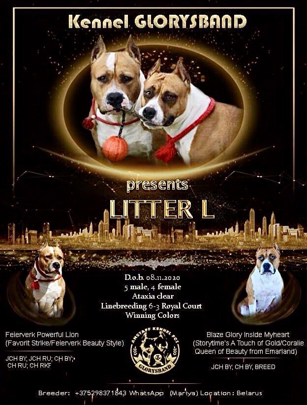 Выпускники питомника Glorysband - невероятные амстаффы с родословными FCI